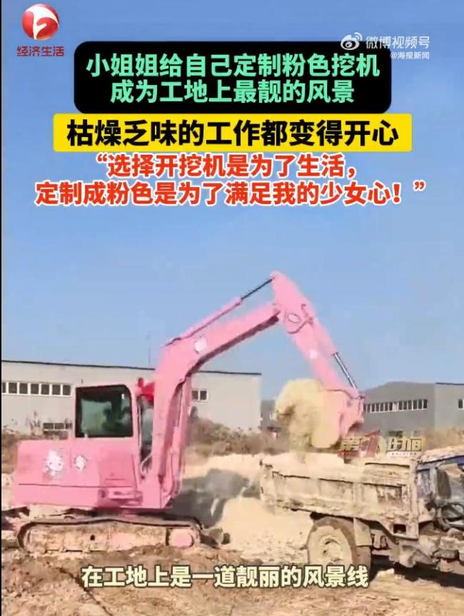 12月18日,山东菏泽一位女子为自己定制了一台粉色发掘机,成为工地上一道共同的风景线年开端从事发掘机职业,她认为女人开发掘机也应该有女人的特征。由于她个人非常喜欢粉色,因而决定将发掘机定制成粉色。她表明,挑选开发掘机是为了日子,而将其定制成粉色则是为满意自己的少女心。在工地上作业尽管枯燥乏味,但看到这台粉色发掘机时,心境就会变得特别好。